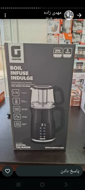چای ساز ایستاده جیپاس مخزن آب جوش 1.7 لیتر مخزن شیشه ای چای 1لیتر